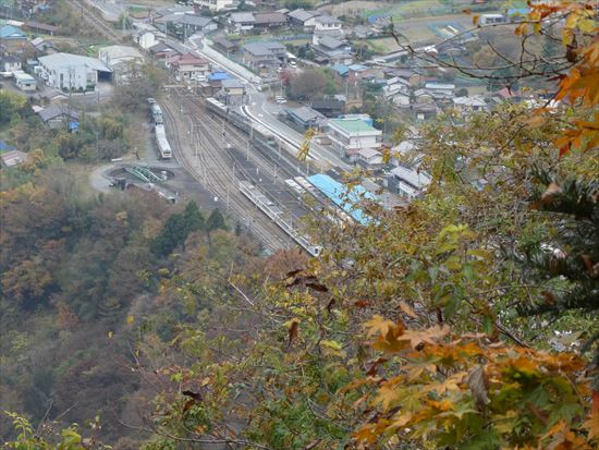 広葉樹林帯から秩父鉄道三峰口駅を臨む | ||||