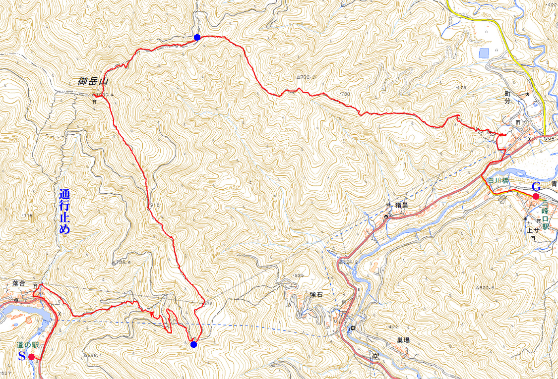 落合ルートは土砂崩落で通行止めのため杉ノ峠へ向かう | ||||