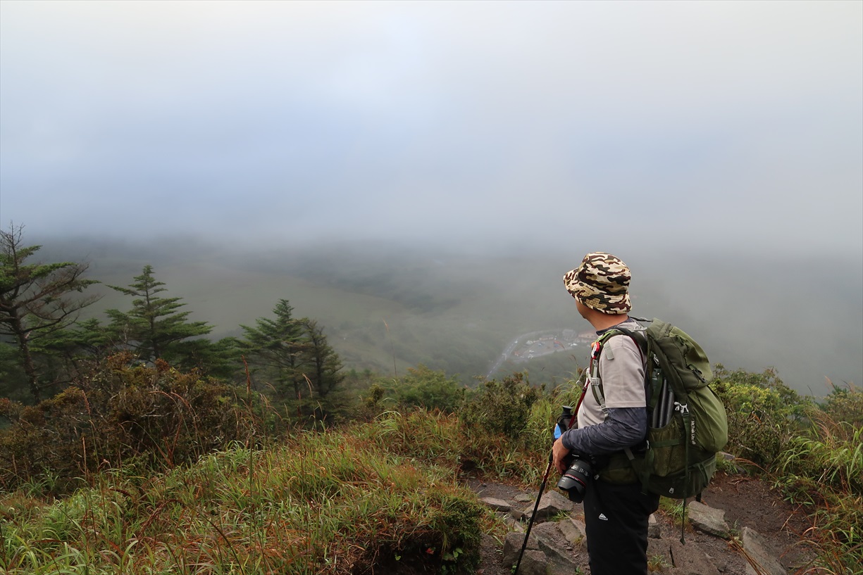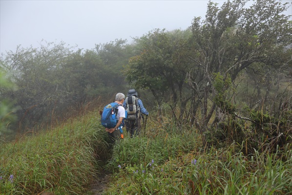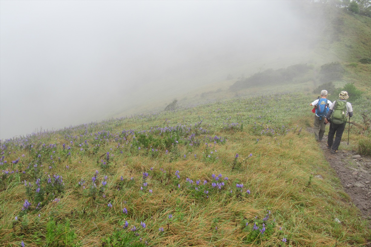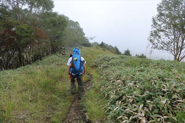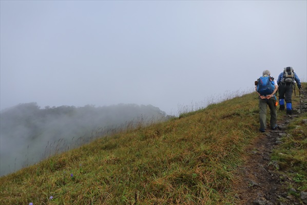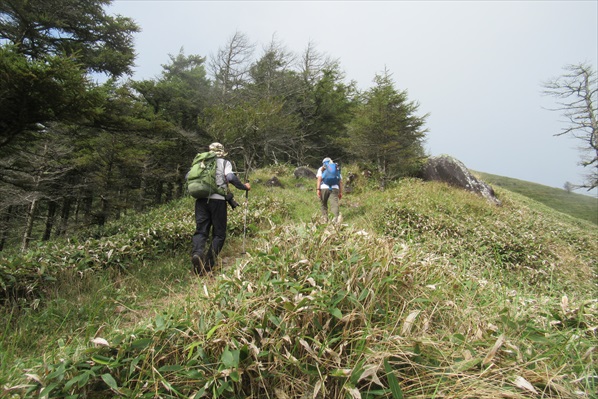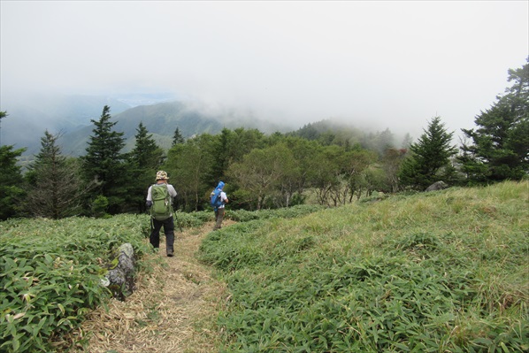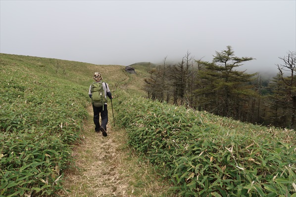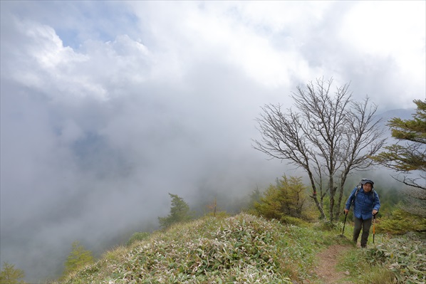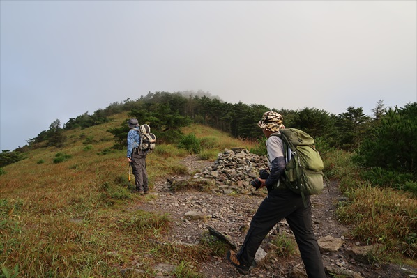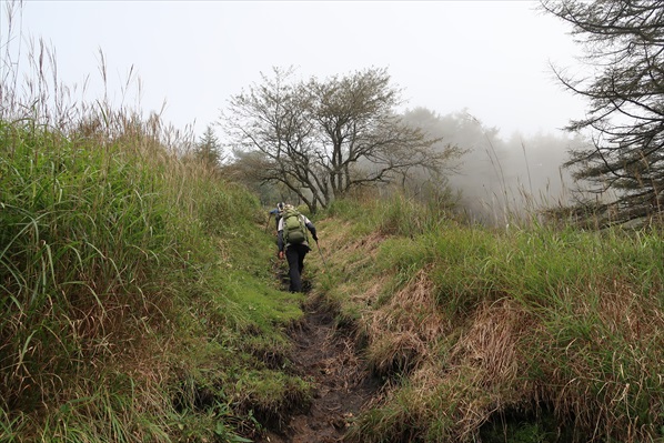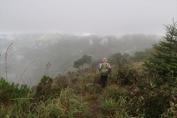 天気が良ければ前方に見える岩頭に立つんだけどこんな天気じゃスルーだね(ノД`) | ||||