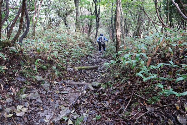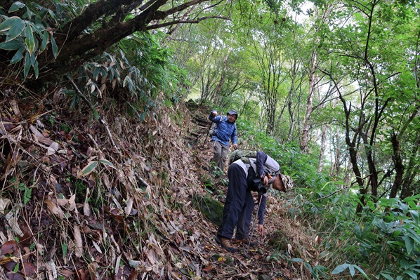 小雨によるスリップ転倒に神経をつかい激下りの写真は一枚もないけれど鷲ヶ峰からの下りは要注意です (下段高低図参照) |