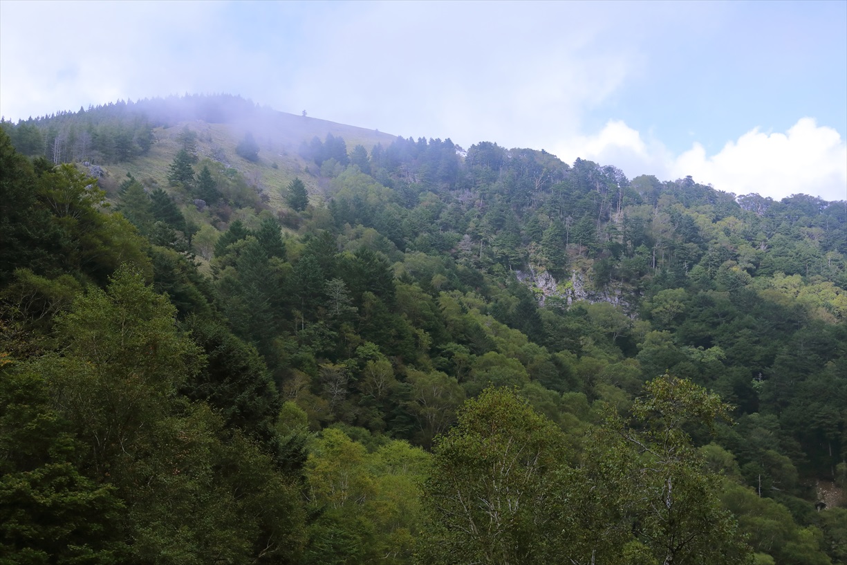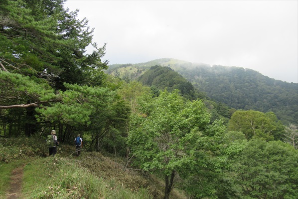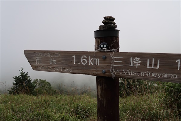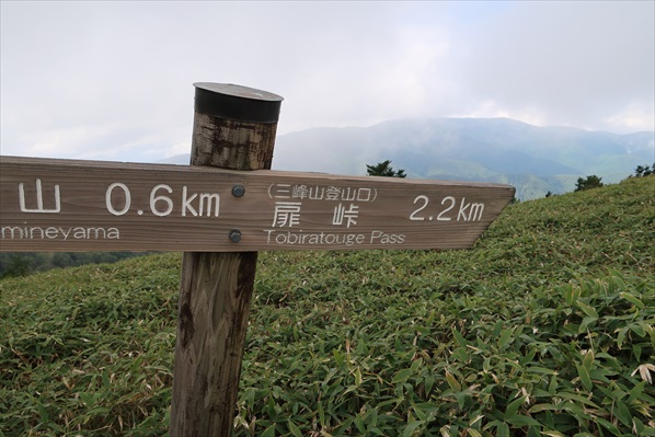 写真右側に三峰茶屋の建物が見える ルートから外れているので立ち寄らないが緊急時(水分補給やトイレ)には役立つかも・・・ |