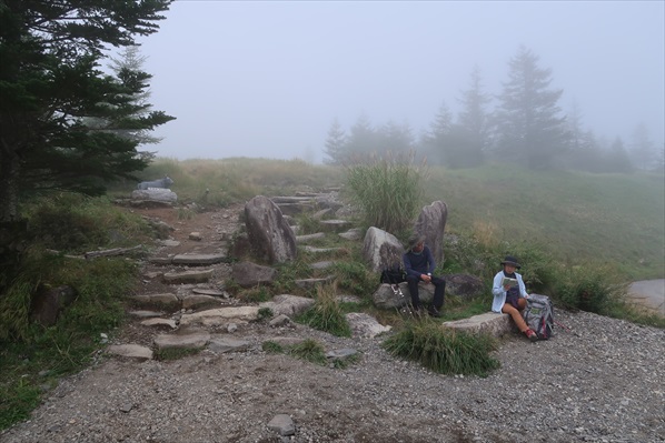 美ヶ原高原美術館から約40分の移動で八島湿原駐車場に到着 小雨のため出発を20分遅らす |