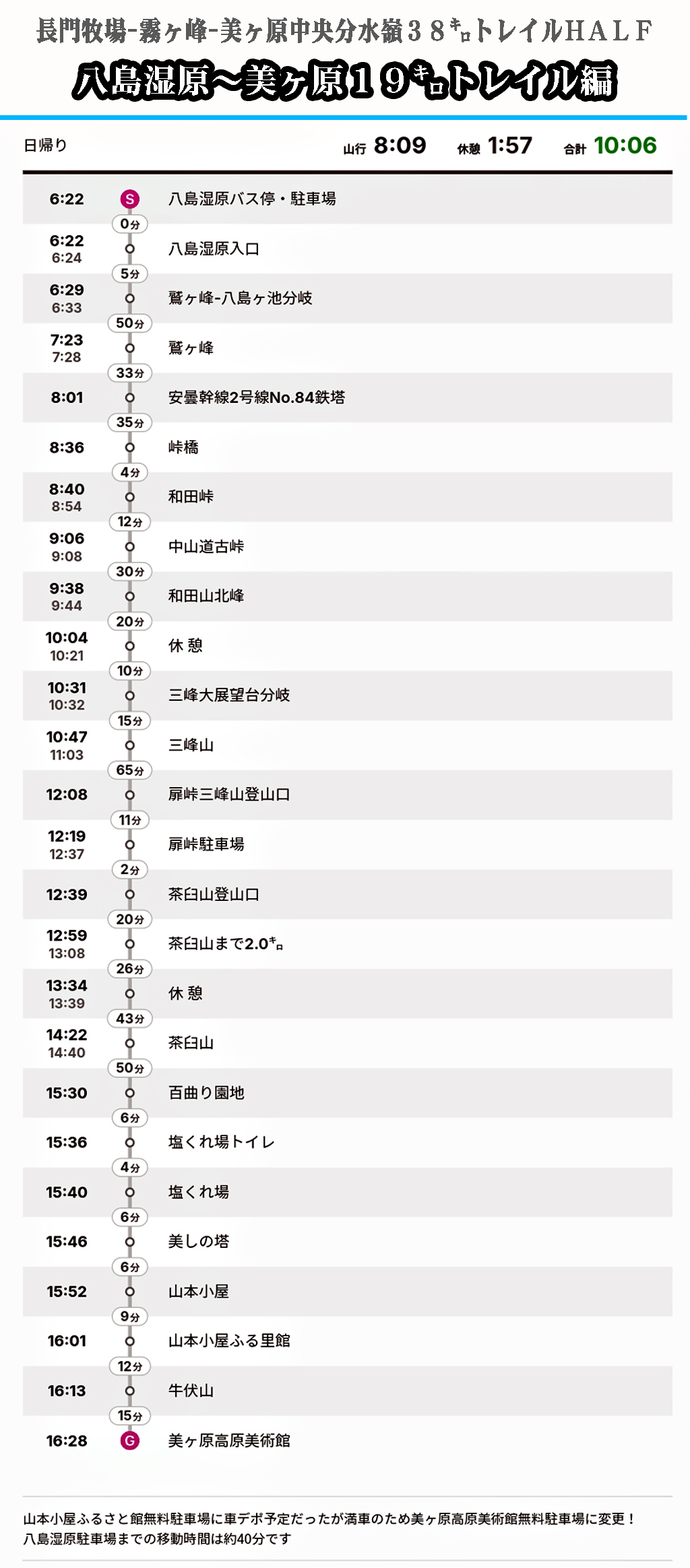 《八島湿原〜美ヶ原コースタイム他》 写真撮影時間20分〜100分含む |