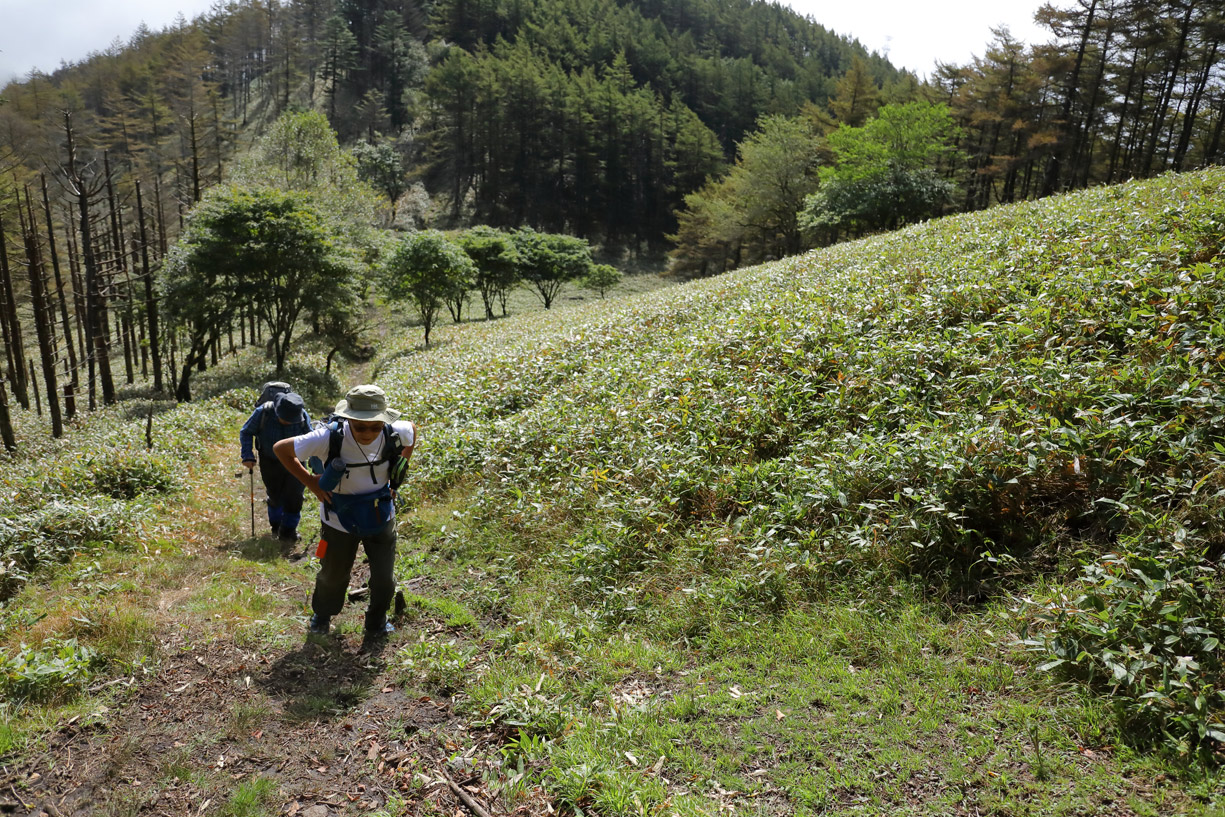 先頭の2人に露払いをお願いして最後尾から、、、 | 石碑 | |||