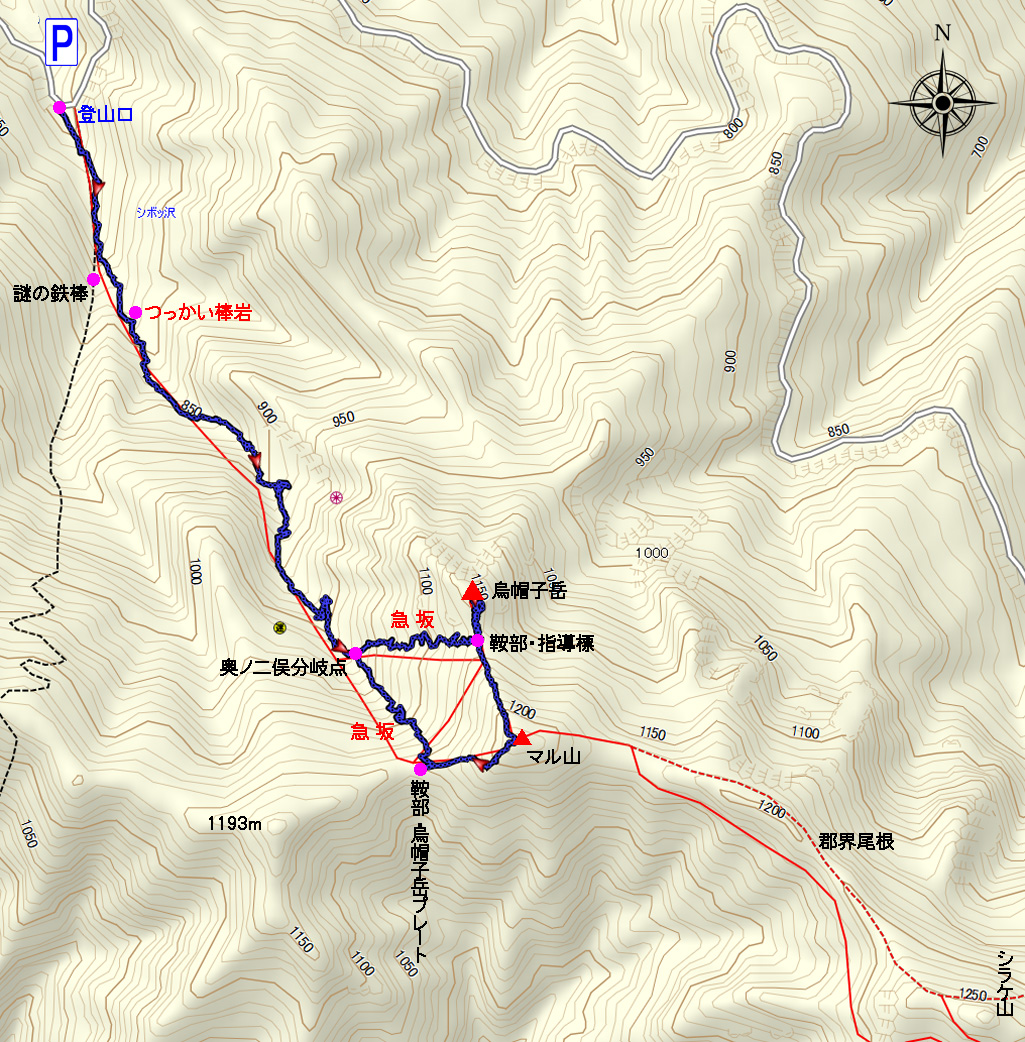 烏帽子岳・大仁田ルート地図 |
