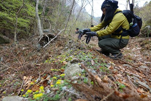 コガネネコノメソウ撮影中 |