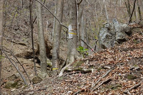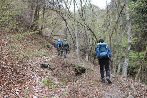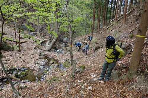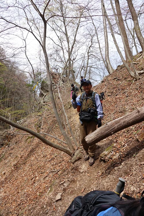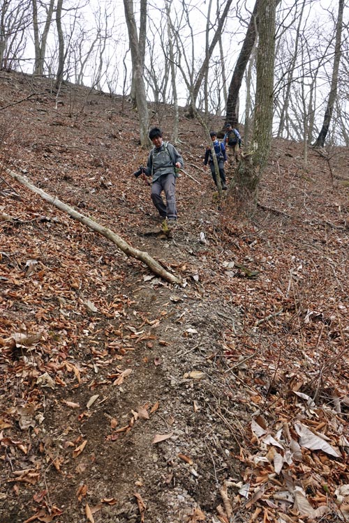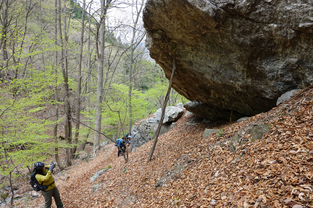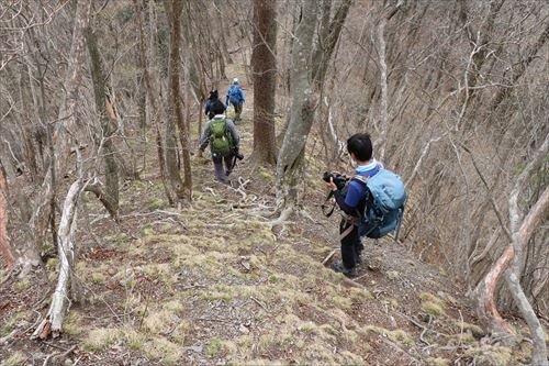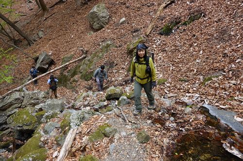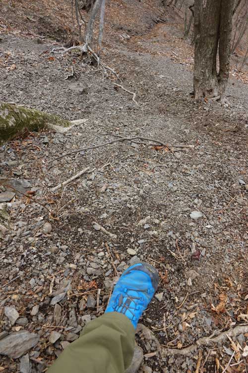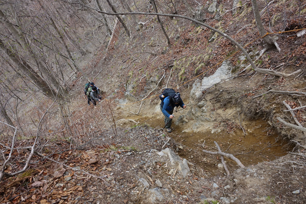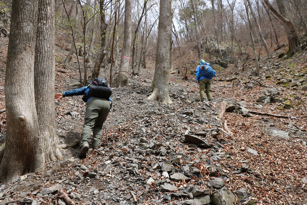 このルートも激下りのうえザレ道でグリップが効かず悪戦苦闘 |