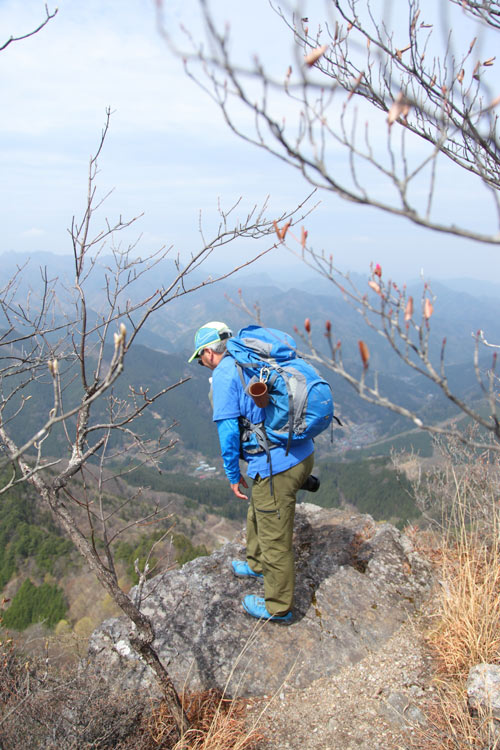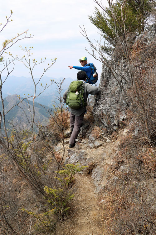 山頂岩頭から恐る恐る覗き込む |