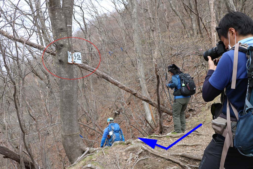 鞍部分岐点はこのプレートが目印 |