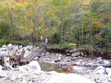 登山口から沢に架かる木橋を渡り尾根下部の登山道に取り付く。