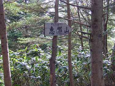 尾根の急坂を登り切り、恵那山の肩下付近に出ると「山頂まで20分」の標柱があり、ここからは南斜面