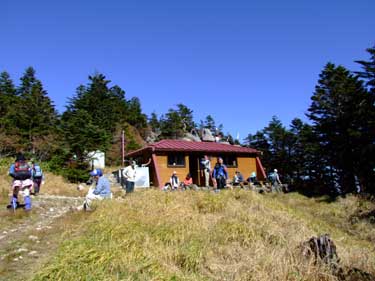 山頂から6分ほどの場所に避難小屋とトイレがあり小屋裏の岩に登ると眺めが良い。mikio