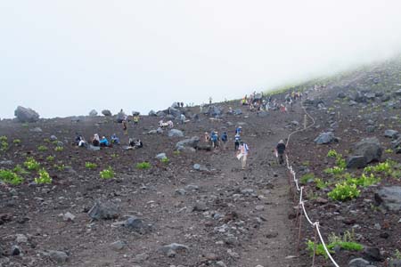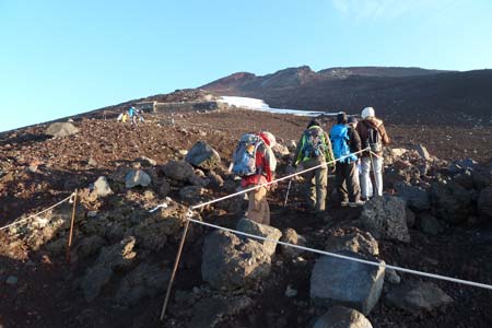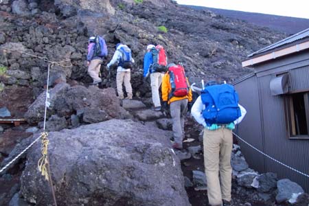 九合五勺・胸突山荘/登山者や下山者で大賑わいの富士山山頂近辺