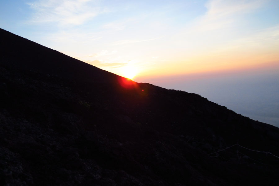 am 5:06 朝陽を浴びながら山頂を目指す |