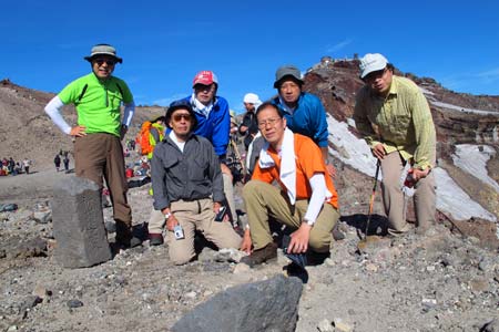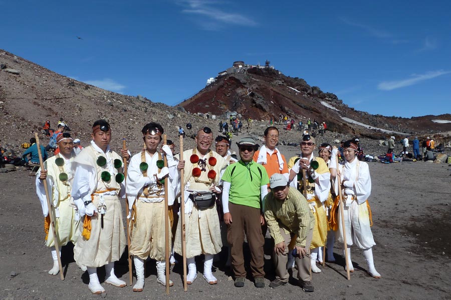 富士山本宮・浅間大社奥宮の裏手で山伏の皆さんと記念撮影 (^O^)v |