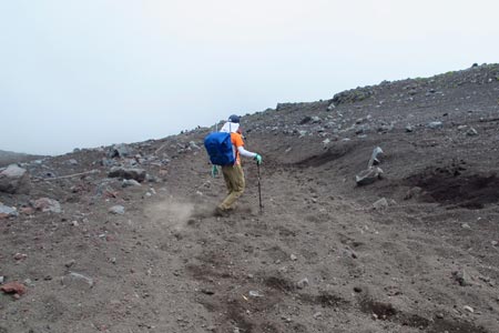 登りでは使いたくないが下りでは快適な砂走り道 |