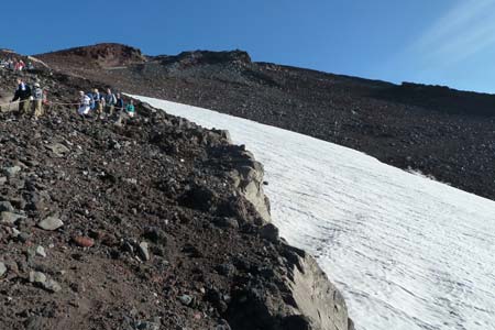 伊藤・戸谷・北澤・中村さんのピストン班 管理人・関谷さんの砂走り〜宝永山経由班に分かれて下山開始 |