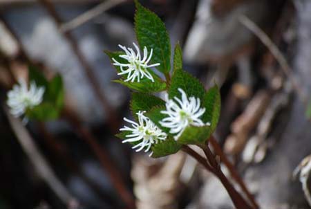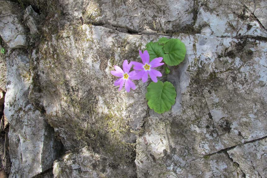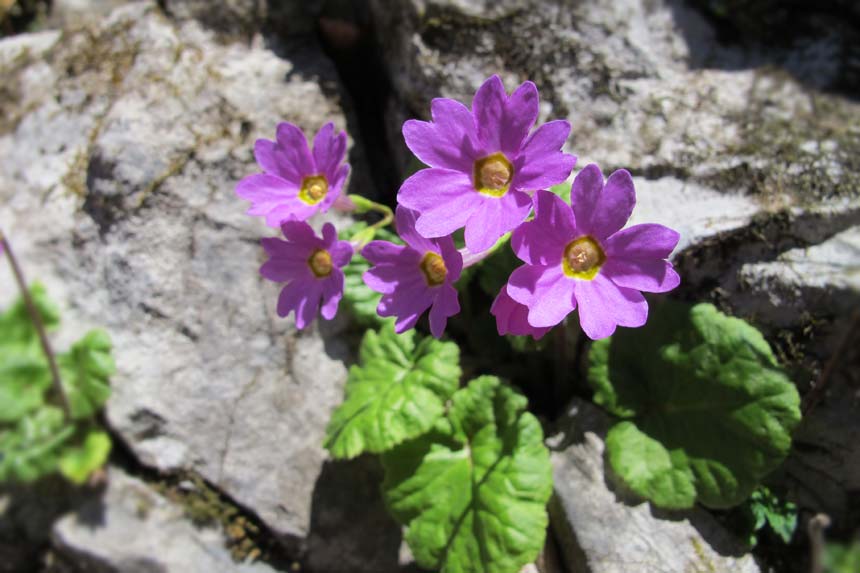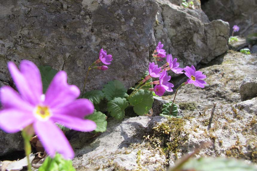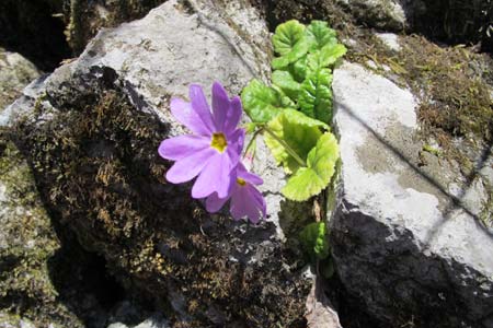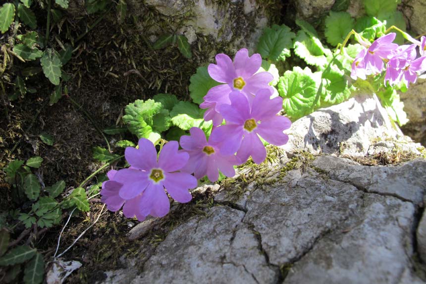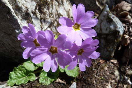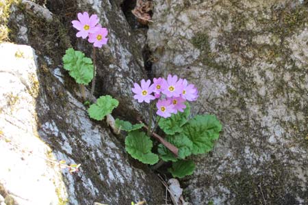 舟伏山のイワザクラ(岩桜) 心無い人の盗掘で個体数が激減しているそうですが咲くべきところで咲いてこそ−と肝に銘じてもらいたいものです。 |