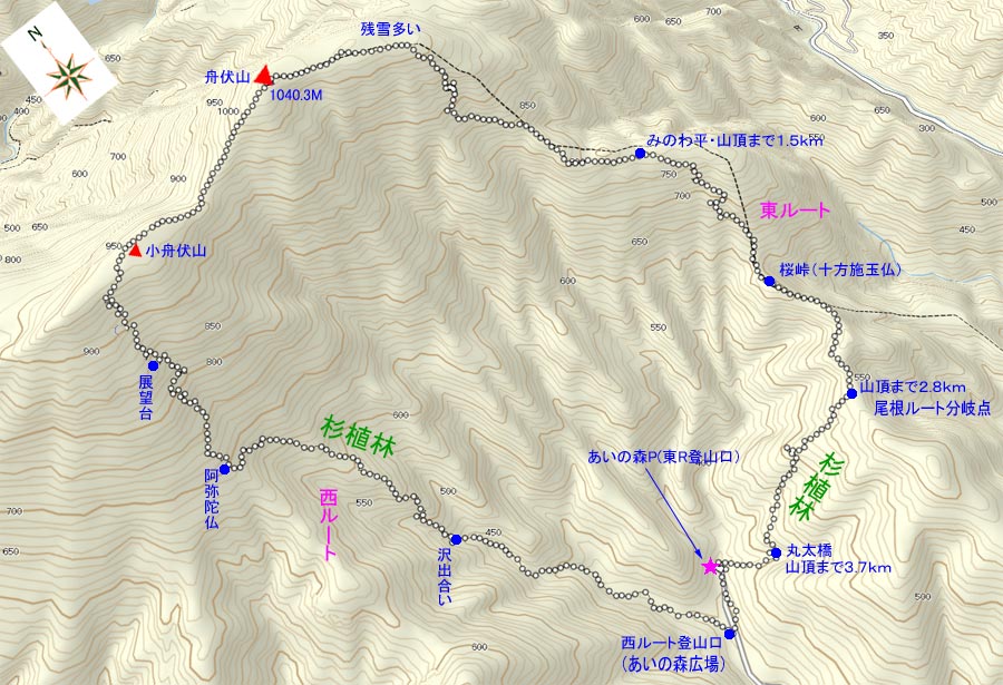 あいの森P(トイレ有)から東ルート登山口へ | |||
