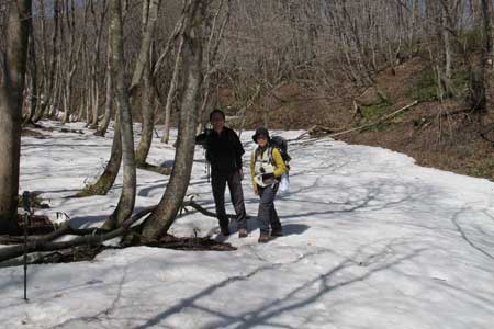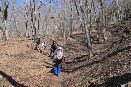 広葉樹林帯はカタクリ群生斜面だが例年に比べ開花が2週間近く遅れているようだ | ||||