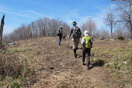 山頂を横切って西ルート下山口へ向かう | 先ずは小舟伏山に向けて下る | |||