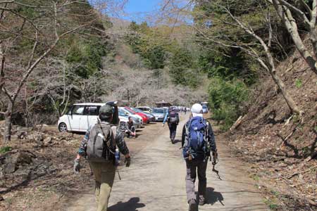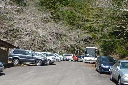 駐車場に到着 | 朝方は疎らだった駐車場も大型バスまで停まって大賑わい! | |||