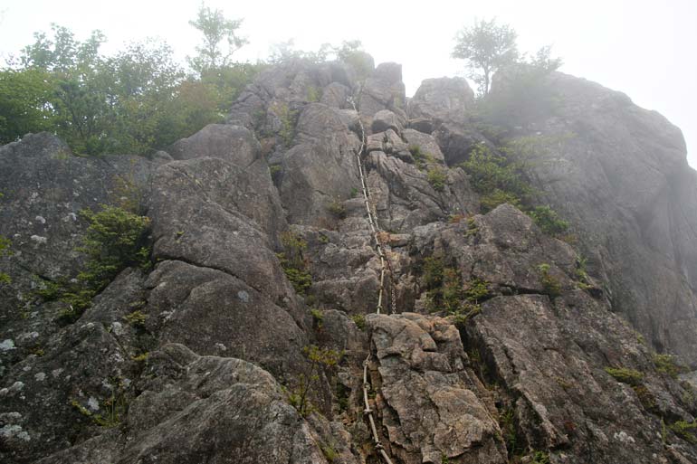 右の女体山、左の男体山ともクサリがつけられているが男体山は上り下りとも技術を要する。