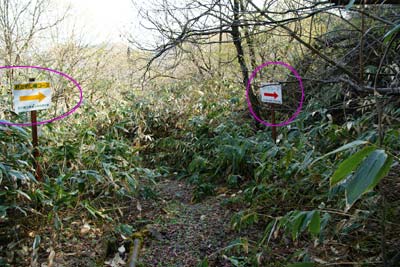 緩く下った場所にも 少年の家オリエンテーリング標識がたつ |