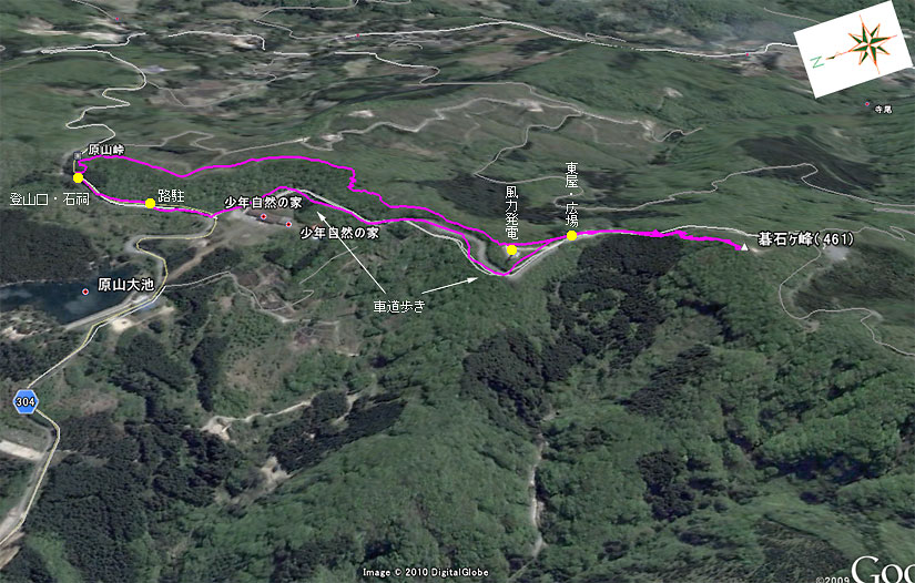 R304 路肩駐車 赤↓登山口&原山峠 黄色↑少年自然の家 |
