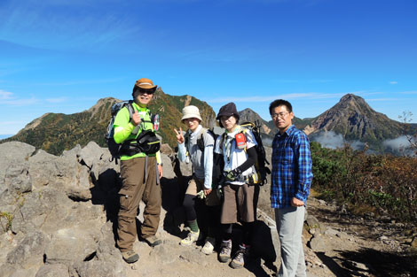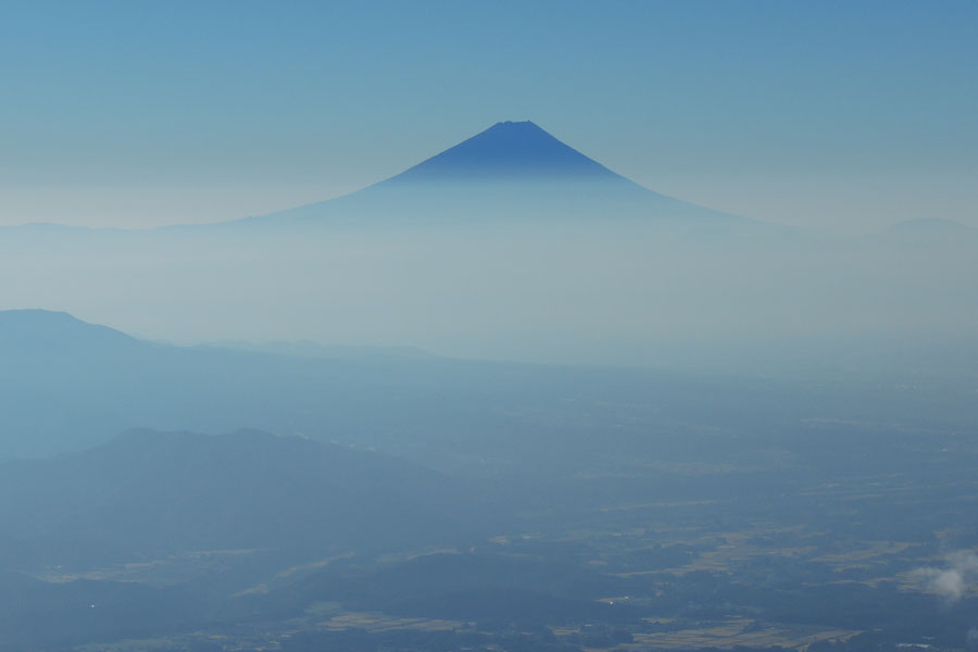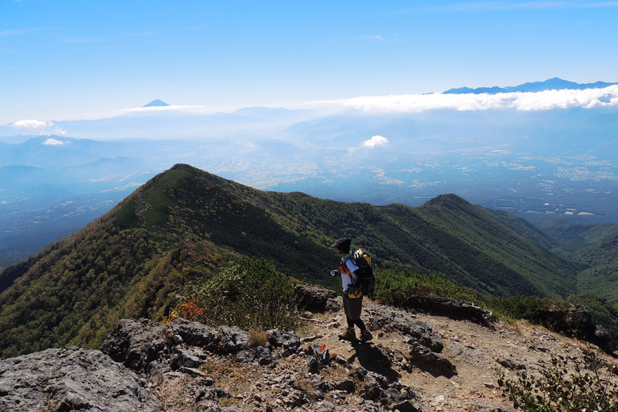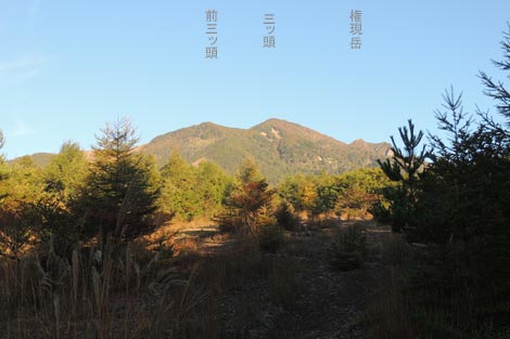振り返れば/手前から奧三ツ頭・三ツ頭・富士山 |