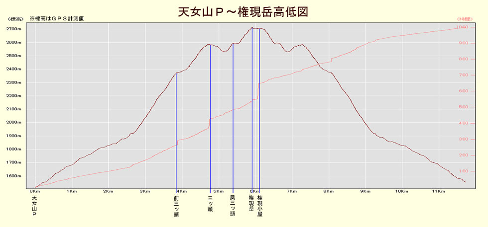 天女山駐車場標高/1530M 標高差/1185M 総歩行距離/11741M |