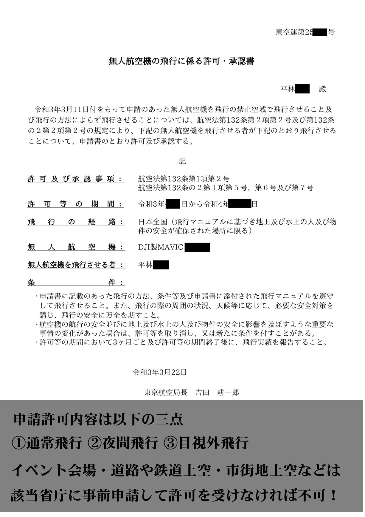 今回この証明書は必要なかったがイベント会場や市街地空撮などではこの証明書がないと申請段階で却下されます | ||||