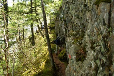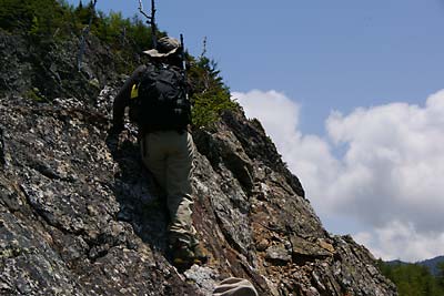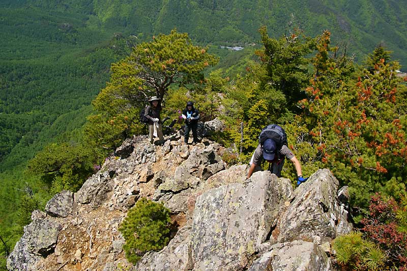 間違いに気付き岩稜左側面の正規ルートに戻る