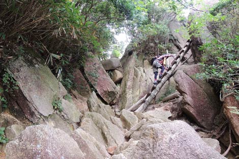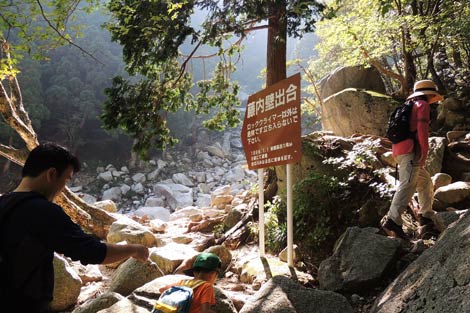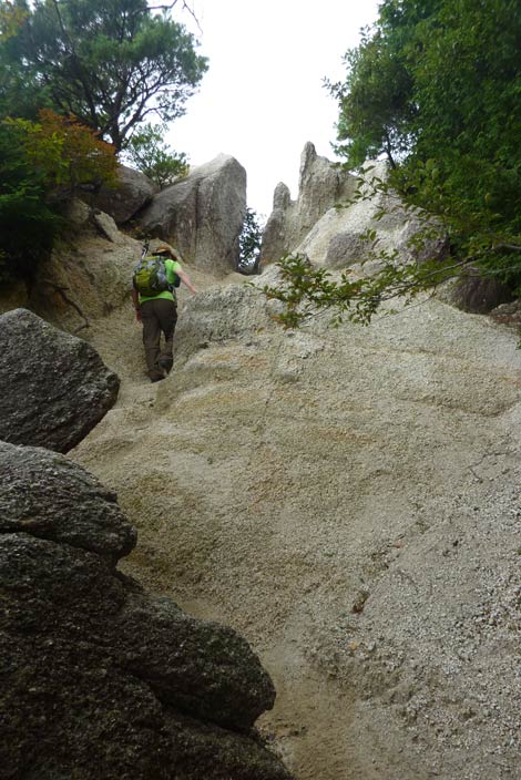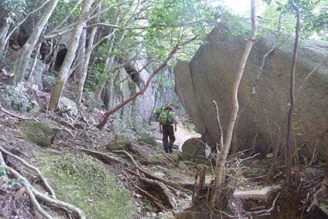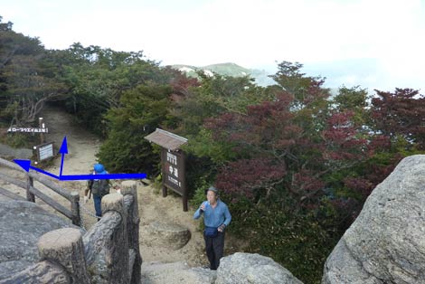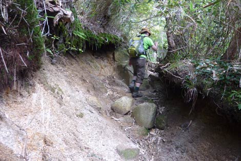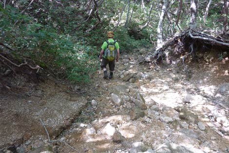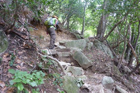 裏登山道は初心者用ルートと案内されるが豪雨災害の影響で歩きにくい箇所が多いので要注意 |