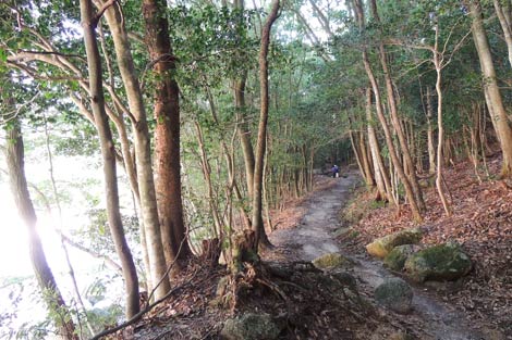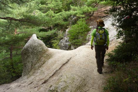 遊歩道をショートカットしてスキーゲレンデを下る |