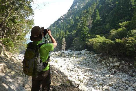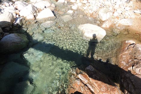 七の渡しを通過したら山沿いに進むのが正規ルートだが砂防ダム鉄枠をくぐり日向小屋の対岸に出る |