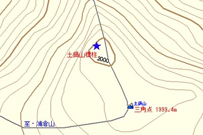 土鍋山 この標柱の立つ場所が標高2000M地点で三角点(1999.4m)は南東に数分歩く |