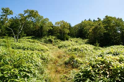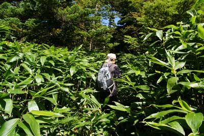帰路はこの北崖斜面に沿って下山する | こちらも笹原道が続く | |||