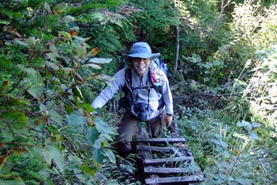 目指す土鍋山 | 体重制限つき?木梯子 | |||
