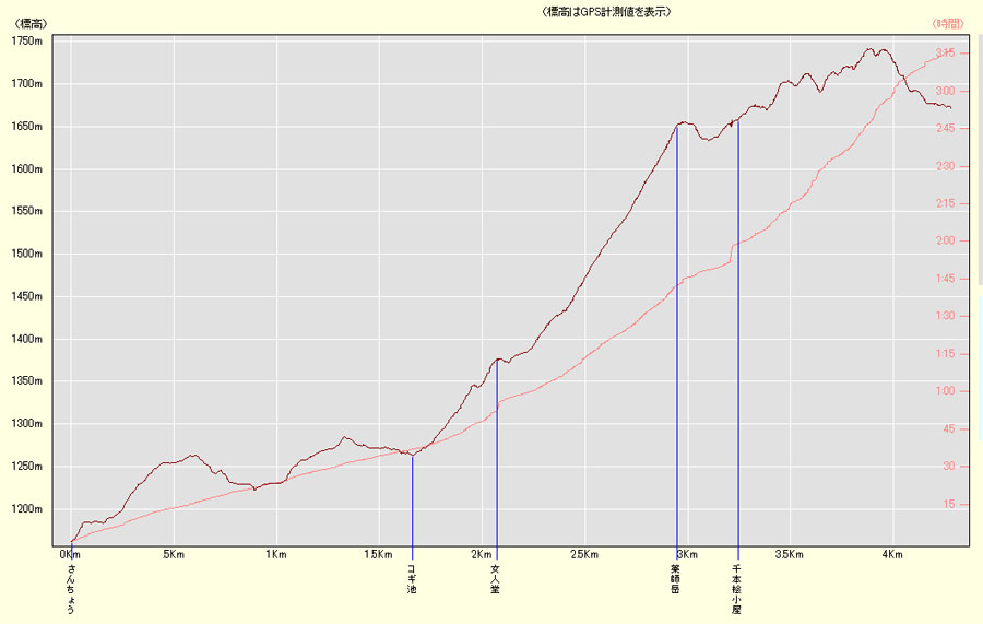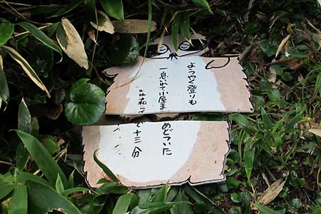タヌキ君のお出迎え/小屋まで13分 | アルミ梯子+クサリ場(約20b) | |||