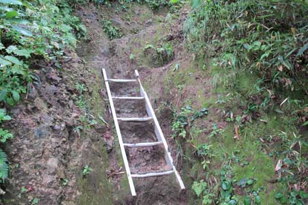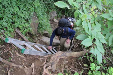 女人堂の屋根が見える | アルミ梯子A地点を通過すると女人堂が近い | |||