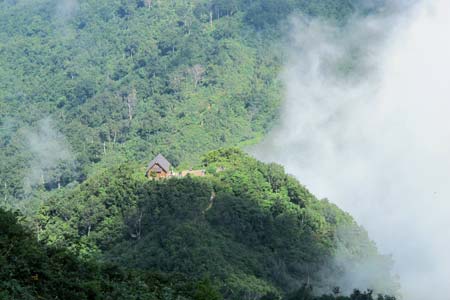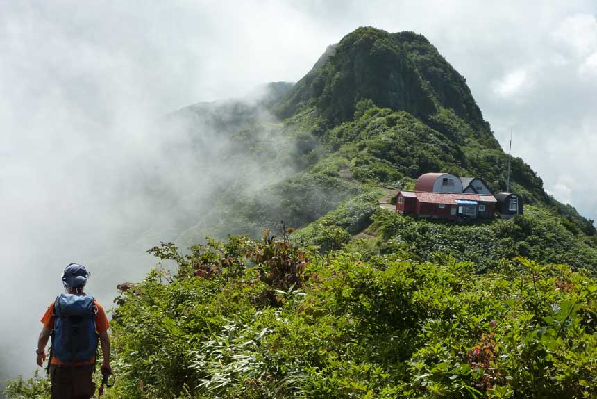 千本檜小屋(九合目)と八ツ峰の地蔵岳全景 | ||||