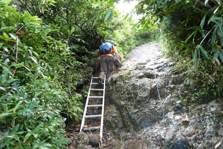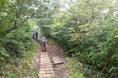 木道歩きが終わると徐々に斜度が増してくる | アルミ梯子@地点 | |||