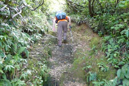 分岐A地点に向かう八ツ峰迂回路だが、迂回路といえども侮れない場所だ![]() |