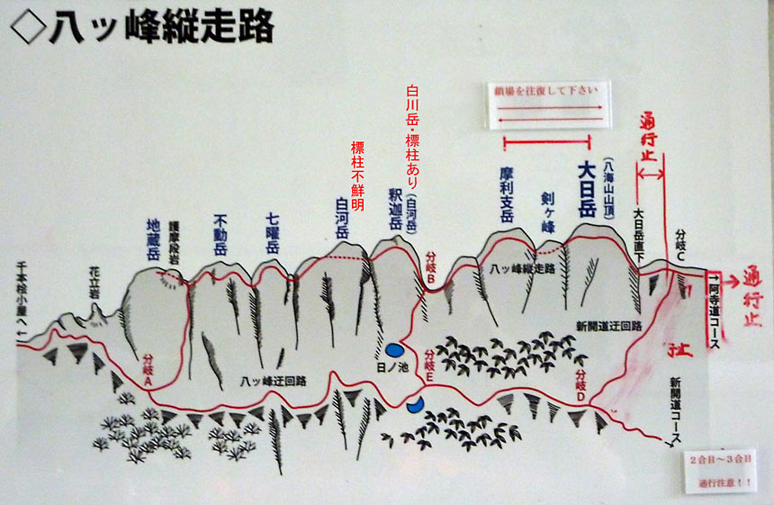 八ツ峰迂回路も崩れかけた地点が見受けられ、再度の大雨によってはこの迂回路も通行不可になる
