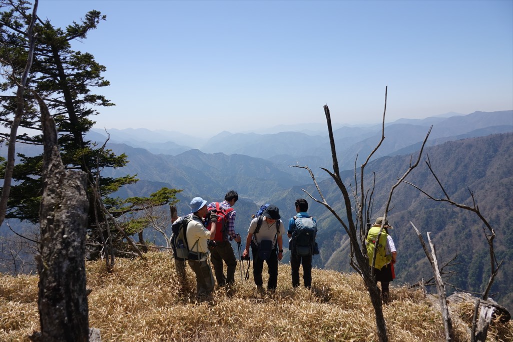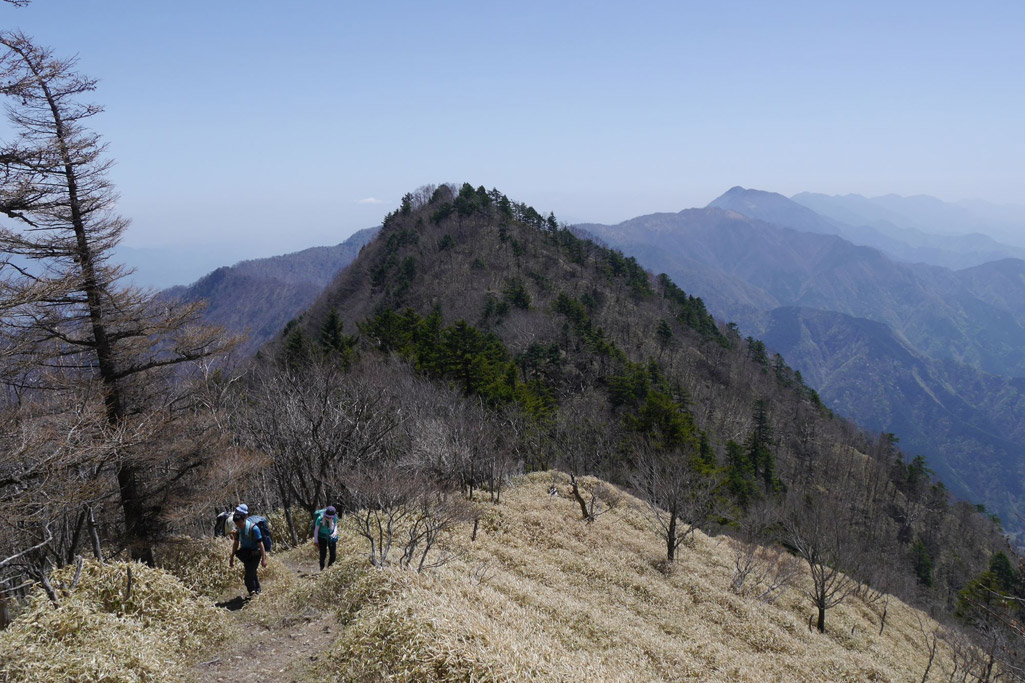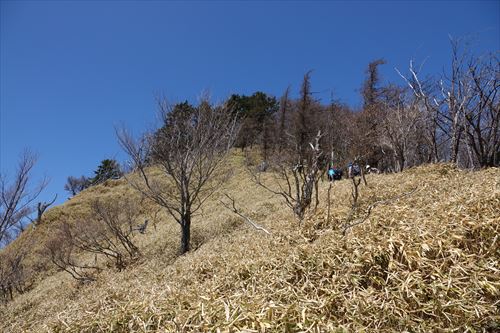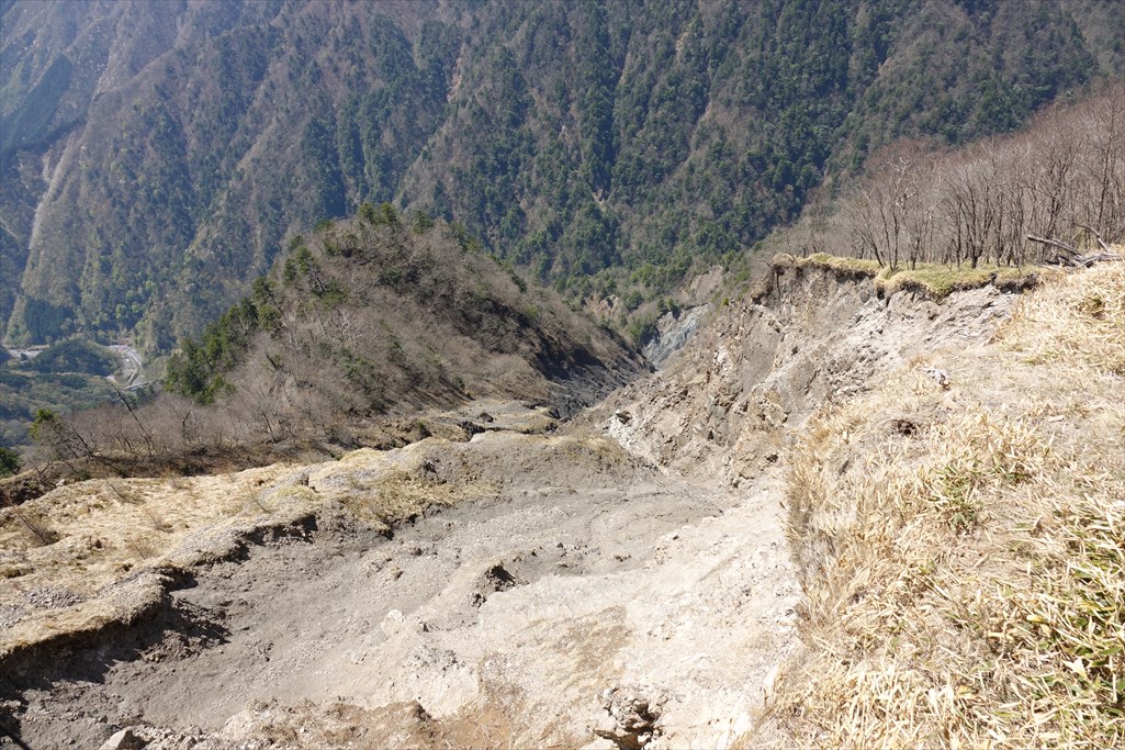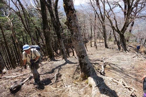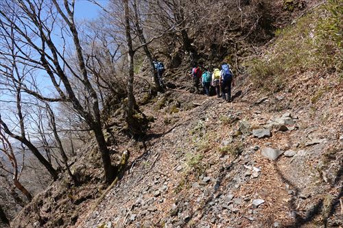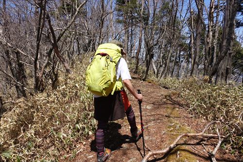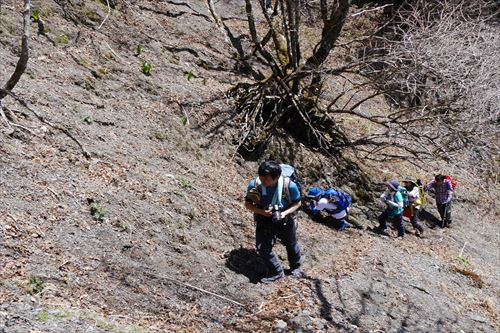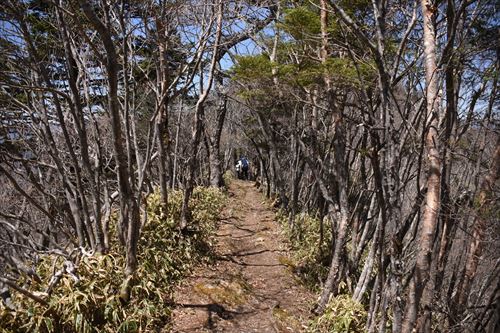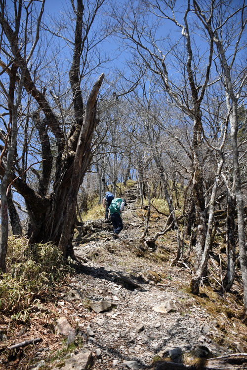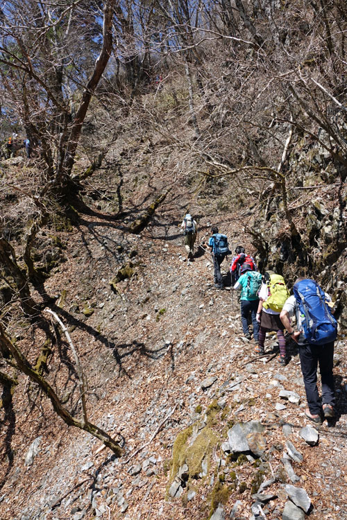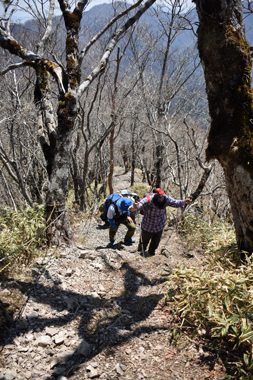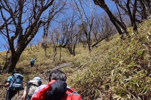 ザレ斜面 | 笹原になると頭上が開けはじめる | |||