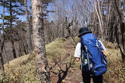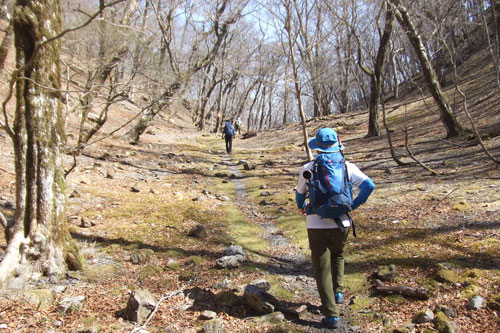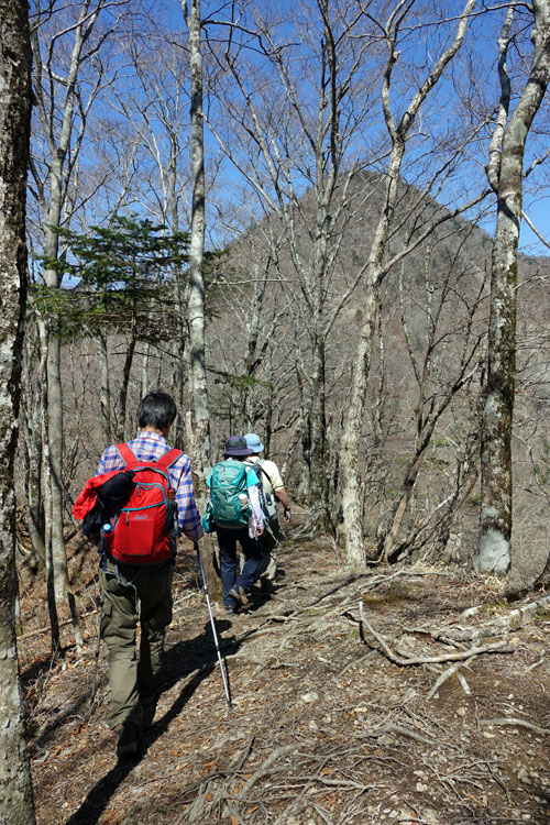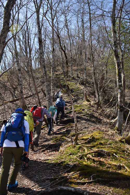 まずは急坂をひと頑張り! | 前方の前衛峰を直登じゃないよね〜? などと話しながら進む(笑) |