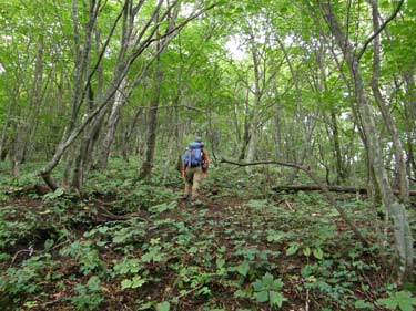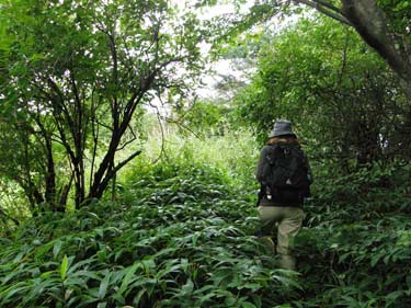 一歩踏み出しても二歩後戻りしてしまうほどの急登だ | 最後の藪漕ぎ | |||