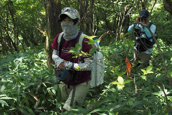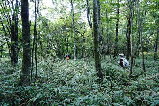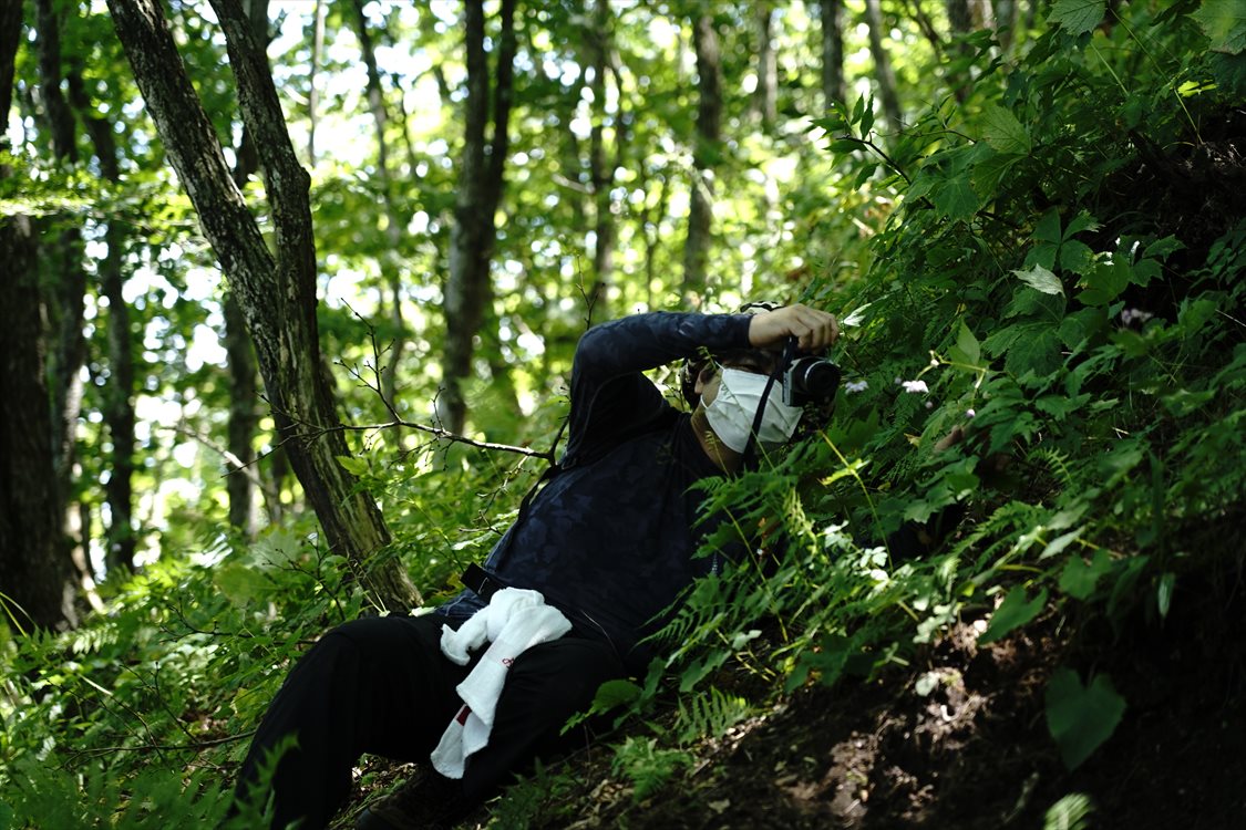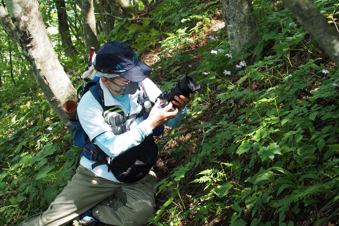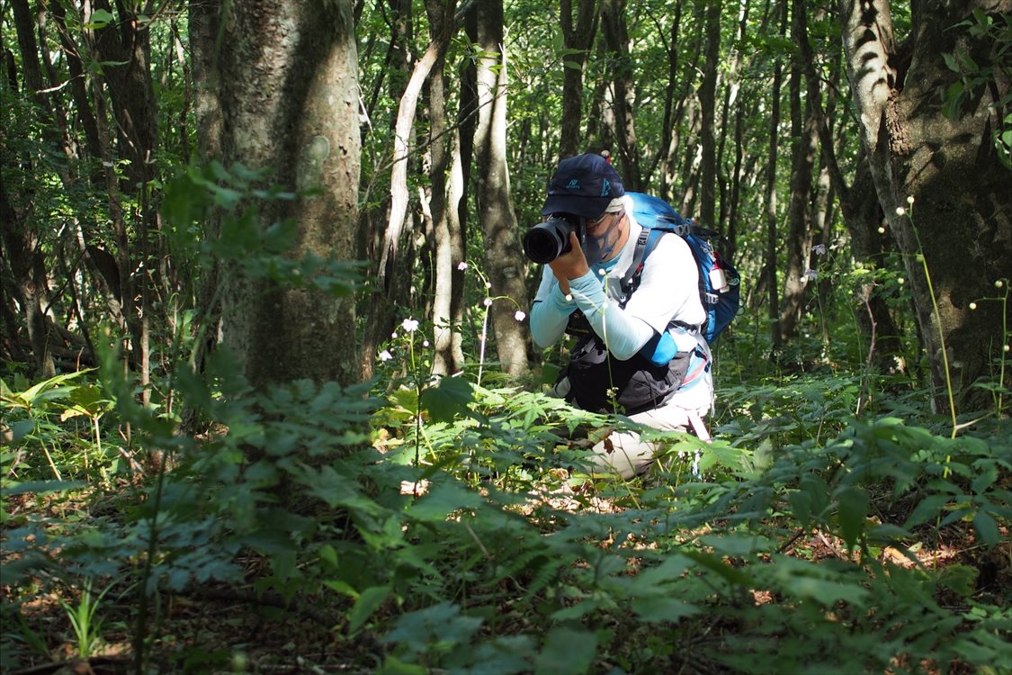 足元で咲くレンゲショウマを踏みつけないよう細心の注意をはらい各々撮影タイムに突入 | ||||