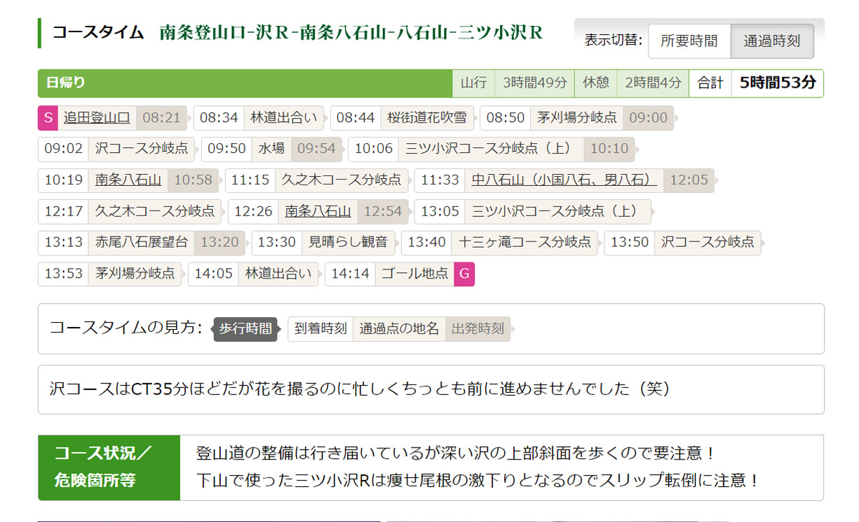 《八石山コースタイム他》 写真撮影時間20分〜100分含む |